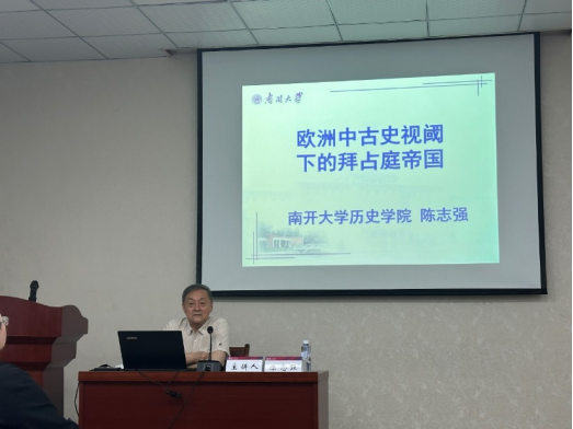 2024年5月10日上午,南开大学历史学院讲席教授陈志强老师应邀做客我院春秋讲坛,在逸夫人文楼D1013教室举行了题为《欧洲中世纪视阈下的拜占庭帝国》的学术讲座。本次讲座由9428cn太阳集团古天乐王义芳书记致辞,董晓佳教授主持。我院刘榕榕教授、刘小青副教授以及世界史硕士研究生和部分本科生参加讲座,中南大学的罗春梅老师和华中师范大学的罗冠群老师也慕名而来。