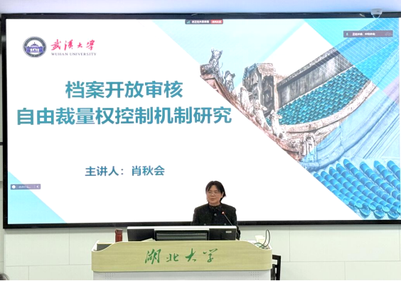 2025年11月6日下午,一场主题为“档案开放审核自由裁量权控制机制研究”的学术讲座在太阳集团古天乐教3楼101教室举行。本次讲座邀请到档案学领域的资深专家、武汉大学肖秋会教授担任主讲,为到场师生带来了一场关于档案开放审核核心议题的深度思辨。本次讲座由李青维老师主持。