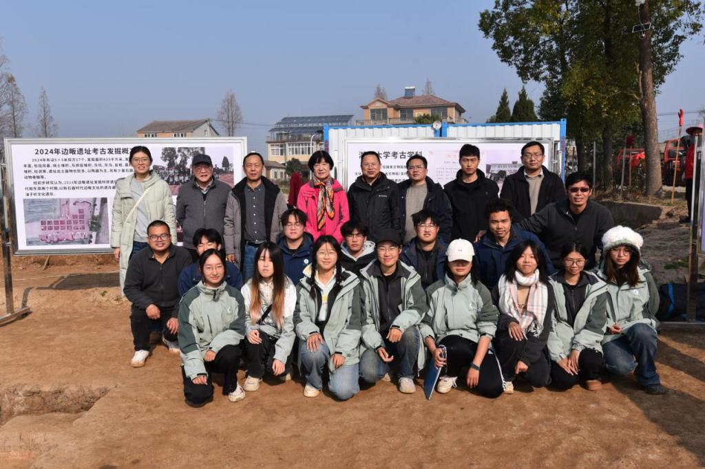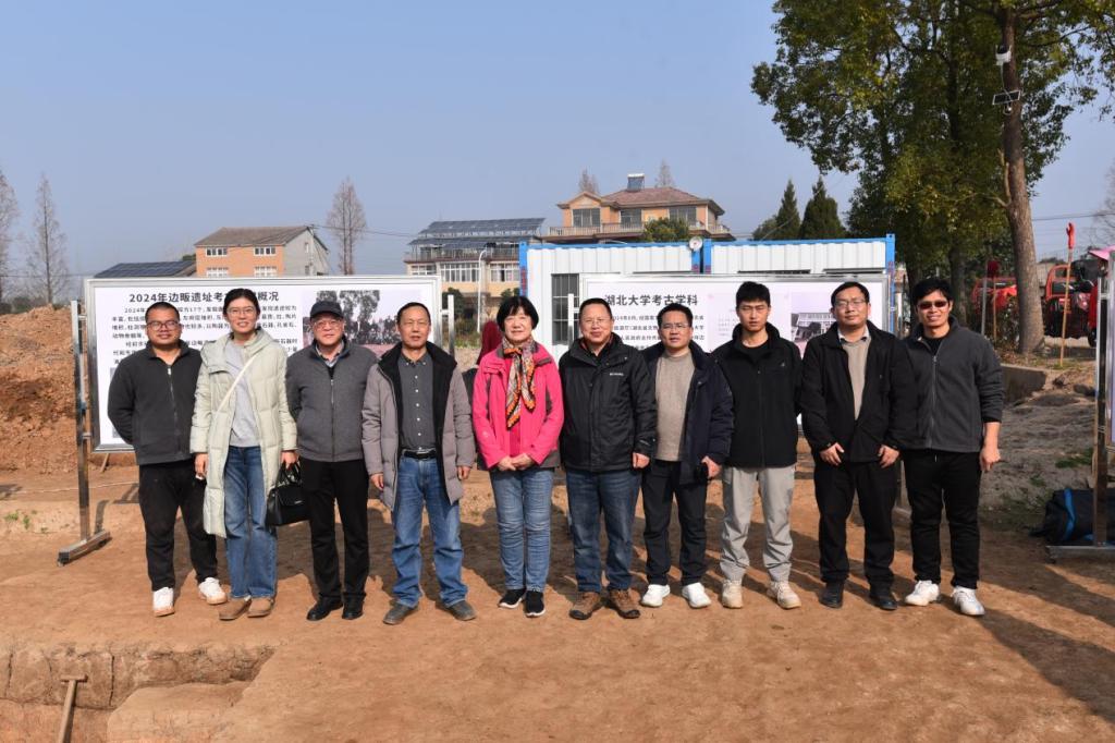 2025年12月19日,吉林大学李伊萍教授、湖北省文物考古研究院罗运兵副院长、陶洋、李晓杨、武汉大学王健博士一行前往钟祥边畈考古教学实习基地,调研2025年秋季太阳集团古天乐考古学专业学生田野实习工作,并亲切慰问在一线实习的师生。