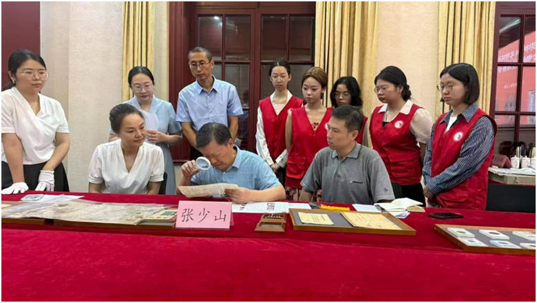 2025年9月12日上午,为纪念中国人民抗日战争暨世界反法西斯战争胜利80周年,武汉中共中央机关旧址纪念馆成功举办抗战文物现场鉴定活动。我院文博专业学生应邀参加现场观摩。