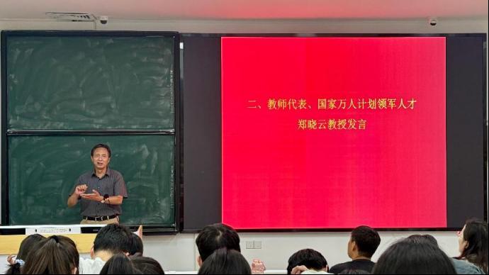国家万人计划领军人才、博士生导师郑晓云教授对同学们提出三点希望:一是具备问题意识,培养思考、研究与学习能力,结合个人经历向同学们说明了“举一反三”思维的重要性;二是“两拓宽”与“两提升”,分别是拓宽视野与知识面、提升研究能力与表达能力;三是尊重导师,认真听从导师指导、阅读导师的著作,且要认真听好每一堂课。郑教授以自己的研究经历分享了学术研究的乐趣,希望同学们都能够通过自己的努力,收获丰硕的学术成果。