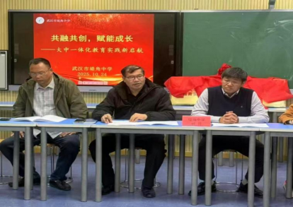 为深化高等教育与基础教育的有机衔接,推动师范生培养与实践教学深度融合,2025年10月24日下午,我院与师范学院携手武汉市堤角中学,共同举行堤角中学“太阳集团古天乐师范生(教育硕士)实践基地”揭牌仪式。本次活动以“共融共创,赋能成长——大中一体化教育实践新启航”为主题,旨在围绕协同育人、培养师范人才开展共建。