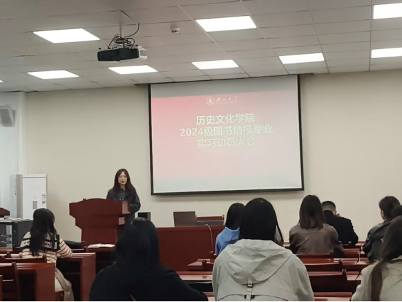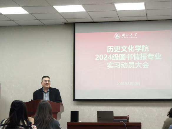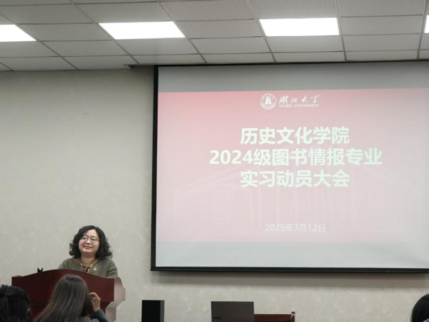 为明确实习任务、夯实专业基础、解答学生疑虑,切实保障2024级图书情报专业硕士实习工作顺利开展,2024级图书情报专硕实习动员大会于2026年3月12日下午在逸夫人文楼D座1013会议室隆重召开。副院长雷平教授、图书情报专硕学位点负责人赵雪芹教授、班主任吕文婷副教授以及2024级全体图书情报专硕研究生出席了本次会议。会议由班主任吕文婷副教授主持。