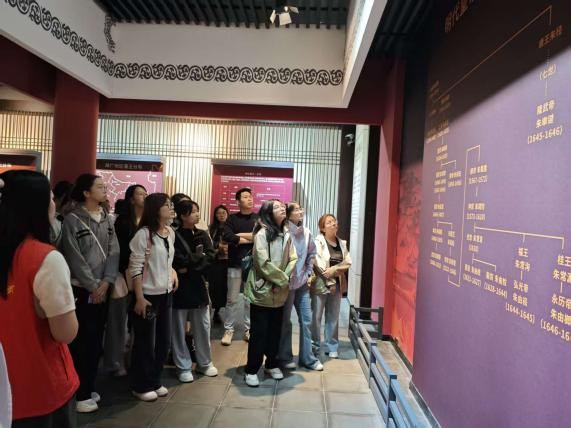 在陵园内,师生重点观摩了保存较为完好的石龟(赑屃)驮碑遗迹。通过现场讲解,学生详细观察碑身的形制、纹饰及铭文内容,了解明代藩王陵寝碑刻的等级规制与雕刻工艺,并就碑刻的保护与展示与带队教师进行现场交流。