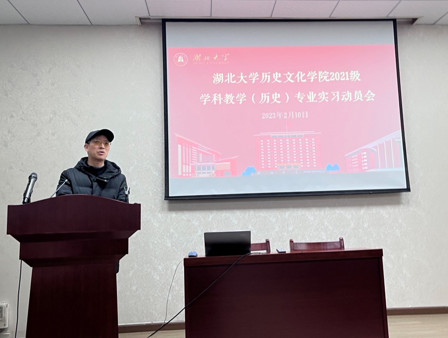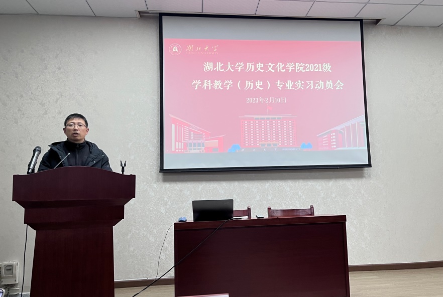 2023年2月10日下午,我院2021级学科教学(历史)专业学生在我院1013教室举行了实习动员会。我院副院长、学科教学(历史)专业硕士点负责人刘彦波教授、班主任刘馗副教授、研究生教学秘书沈艳老师以及2021级学科教学(历史)专业全体学生参加此次会议。