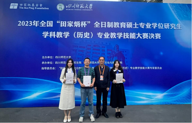 2023年10月20日至23日,在全国教育专业学位研究生教育指导委员会举办的“田家炳杯”全日制教育硕士专业学位研究生教学技能大赛中,我院2022级教育硕士学科教学(历史)专业罗妍婷同学获得二等奖,俞莉同学获得优秀教学设计奖,刘馗老师获得优秀指导教师奖。