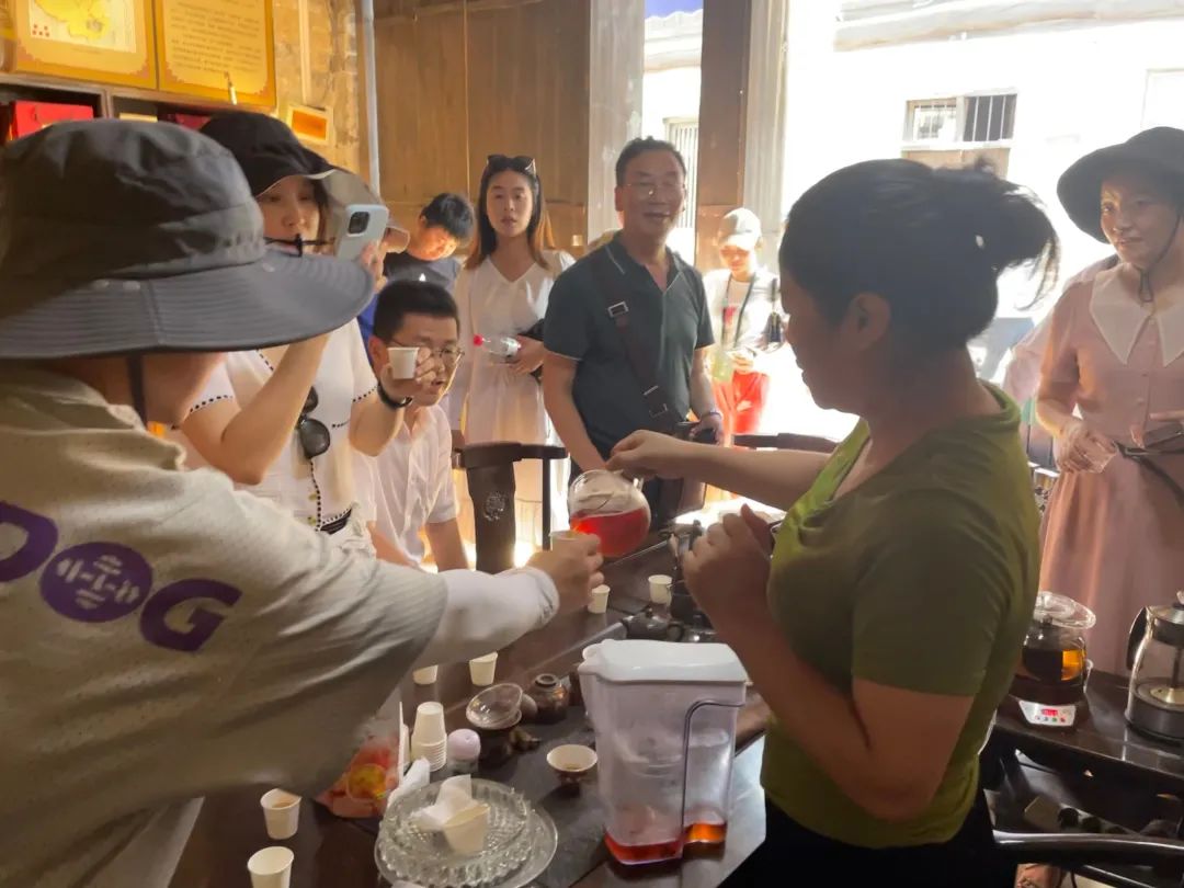 探访团走进氤氲着茶香的羊楼洞明清石板街,停驻在运茶“鸡公车”碾成的车辙印记前,一道道车辙印与青砖黑瓦一同见证了羊楼洞曾经的繁荣,不禁感叹于江南小镇与边塞大漠由砖茶连接起来的神奇邂逅。
